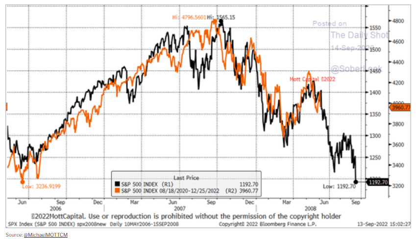 Alcuni riesumano i grafici del 2008 per mostrare come la storia si ripeta: io ci credo poco ma a dire il vero le similitudini sono impressionanti …