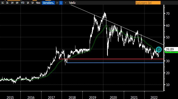 Ai fini del recupero sarà importante recuperare la media mobile a 200 giorni (in verde).