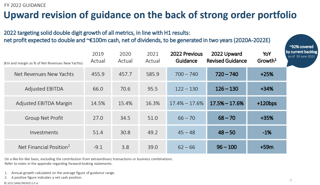 Fonte: Sanlorenzo H1 2022 Results and Strategy Update (sanlorenzoyacht.com)