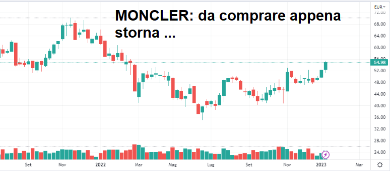 MONCLER: quota a sconto del 15% secondo il modello dei flussi di cassa, ha una crescita di EPS senza NRI a 3 anni composto del 3.9%, ottima solidità patrimoniale e stabilità reddituale