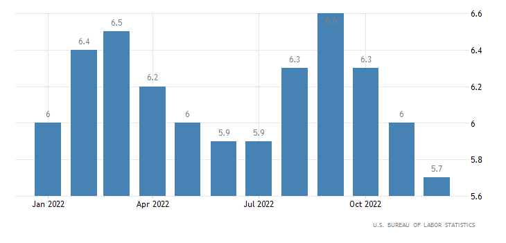 A livello annualizzato a dicembre si segnala un rallentamento rispetto al mese precedente. Nello specifico, a dicembre è stato segnato un +5,7% (come indicato dal consensus) contro il +6,0% di novembre. I dati sono rilasciati dall’U.S. Bureau of Labor Statistics.