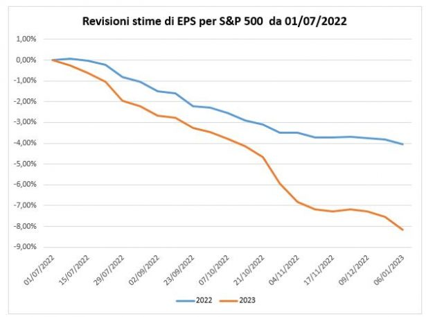 Il punto è proprio questo, cosa faranno le attese sugli utili nei prossimi mesi ? Di sicuro sui livelli attuali di multipli il mercato può sopportare un moderato calo delle aspettative, nonostante il rally. Dipende da che entità sarà, eventualmente, questo calo. Ora sappiamo che l'inflazione è andata a gonfiare gli utili, complice una sorprendente tenuta della domanda, di fronte ai vari shock. Se questa rientra, un impatto sui margini e i profitti potrebbe esserci. E poi bisogna capire se il ciclo tiene, come ha fatto finora, oppure rallenta. Dal lato positivo abbiamo la resilienza mostrata finora, e la riapertura del mercato del lavoro cinese, essendo la Cina un primario partner commerciale. Tra le incognite abbiamo l'ingranare dei rialzi dei tassi che, per esempio, si comincia a vedere negli USA verso un rallentamento dell'economia, e un impatto ritardato del rialzo dei prezzi sulla domanda. Vedremo.