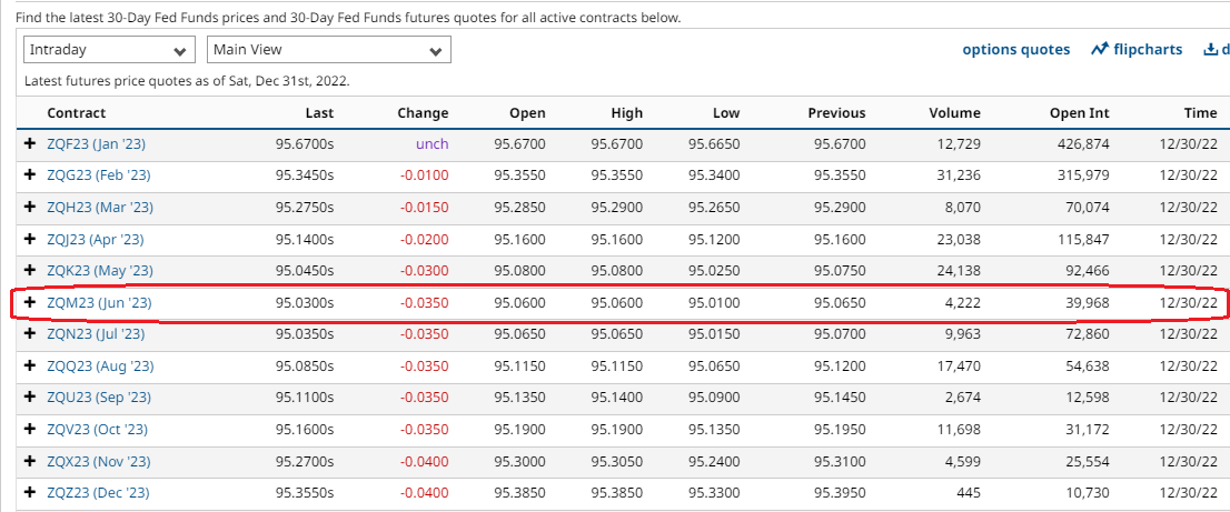 Gli operatori del mercato monetario vedono il 65% di probabilità di un aumento di 25 punti base nella riunione di febbraio della FED, con tassi che dovrebbero raggiungere il picco del 4,97% nel mese di giugno 2023, comunque sotto lo scenario di breve della FED, per il momento.