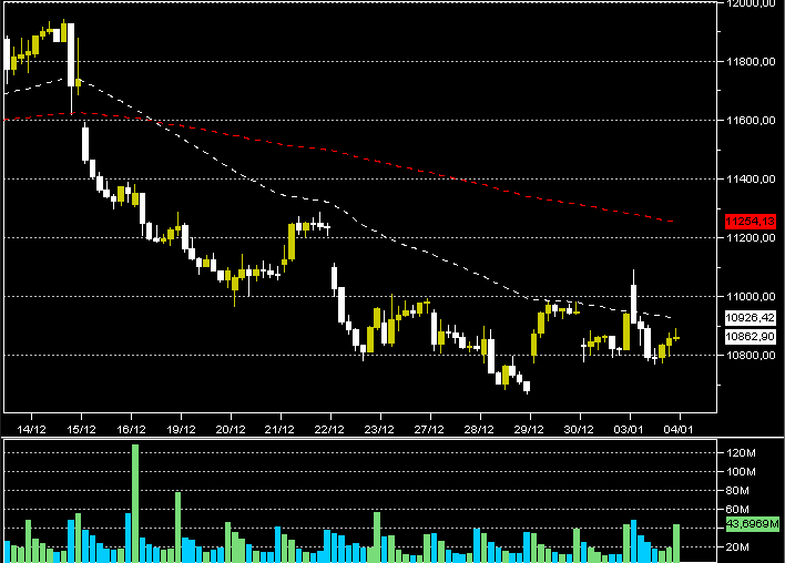 Ci ha lasciato una chiusura di anno molto debole, con gl'indici che sono andati a chiudere sempre più schiacciati sul canale basso e la ripartenza non è stata così marcatamente rialzista come per le borse europee.