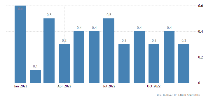 Attualmente i mercati si aspettano che la FED aumenti il tasso a circa il 5% entro la primavera, i funzionari hanno previsto tassi leggermente più alti nelle nuove proiezioni pubblicate il mese scorso. Circa 17 funzionari su 19 hanno scritto piani per aumentare il tasso a un livello superiore al 5% nel 2023 e mantenerlo fino al 2024. Nessun funzionario ha previsto riduzioni dei tassi nel prossimo anno. I verbali non hanno fornito informazioni sul dibattito sull'opportunità di aumentare i tassi di 0,5 punti o di 0,25 punti alla prossima riunione dei responsabili politici della FED, 31 gennaio-1 febbraio.