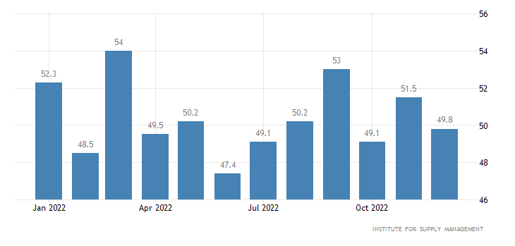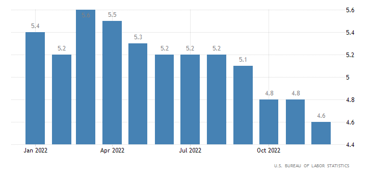 I dati del Dipartimento del lavoro hanno mostrato che nel mese di dicembre i nuovi occupati non agricoli nel settore pubblico e privato statunitensi sono aumentati rispetto alle attese anche se diminuiti rispetto al mese di novembre, mentre la retribuzione oraria media è aumentata dello 0,3% ma è stata inferiore alle attese ed allo 0,4% del mese precedente. Ma in un'altra serie di dati, l'attività dei servizi è diminuita per la prima volta in più di 2 anni e mezzo a dicembre a causa dell'indebolimento della domanda, con ulteriori segnali di allentamento dell'inflazione. Gli analisti hanno commentato: "Abbiamo ricevuto buone notizie sul fronte dell'inflazione con aumenti salariali che stanno rallentando. Abbiamo registrato un aumento dei tassi di partecipazione, eppure stiamo ancora creando posti di lavoro. È una sorta di vantaggio per l'economia. D'altronde il rapporto sui servizi ISM è uscito ampiamente debole”.