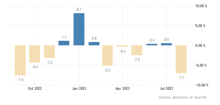 Il dato sulle vendite immobiliari in corso (che misura il cambiamento nel numero di case con contratto di vendita, ma in attesa della transazione di chiusura, escludendo le nuove costruzioni) a livello mensile ad agosto segna un -7,1%, contrazione ben più marcata del -0,8% indicato dal consensus. A luglio era stata registrata una crescita dello 0,5% (rivista da +0,9%). Il dato è rilasciato dalla National Association of Realtors.