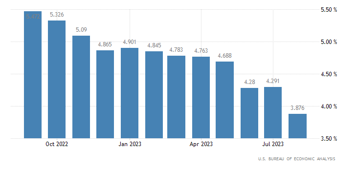 Su base annua, la crescita di agosto è del 3,9%, come indicato dal consensus. A luglio era stato registrato un +4,3% (rivisto da +4,2%). I dati sono rilasciati dall’U.S. Bureau of Economic Analysis.