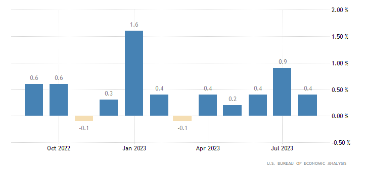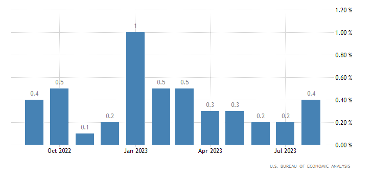 Anche la spesa personale a livello mensile ad agosto segna un +0,4%, come indicato dal consensus. A luglio era stata registrata una crescita dello 0,9% (rivista da +0,8%). Il dato è rilasciato dall’U.S. Bureau of Economic Analysis.