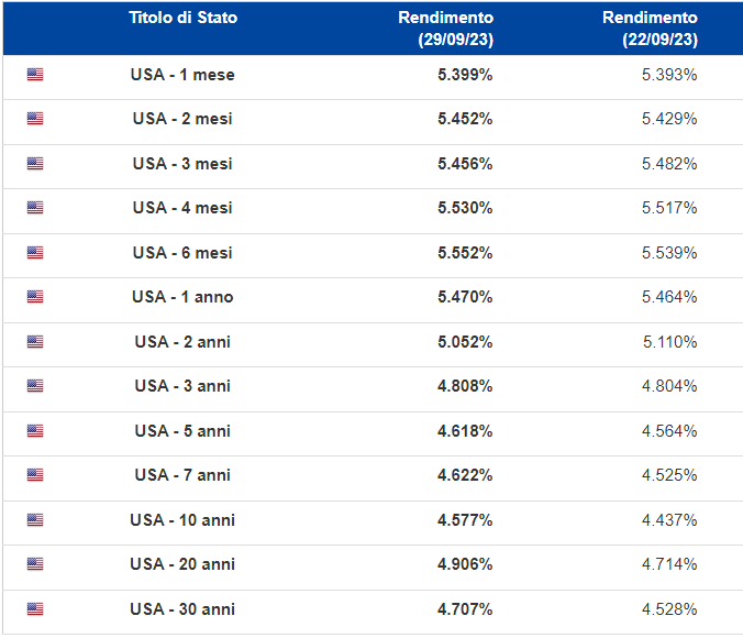 Nel frattempo, i rendimenti dei titoli di Stato sono aumentati, stimolando la domanda di USD. Il rendimento dei titoli del Tesoro a 10 anni ha raggiunto il picco del 4,70%, il livello più alto dal 2007, mantenendosi su queste quotazioni al momento in cui scriviamo. Il treasury a 2 anni offre attualmente il 5,11%, ancora lontano dal picco del 5,20% registrato dopo l'ultimo annuncio di politica monetaria della Federal Reserve (Fed).