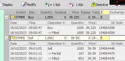 Di seguito trovate l'ordine non eseguito e poi quello effettivamente eseguito con relativa vendita.