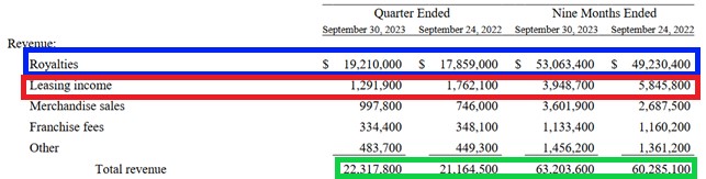 Il terzo trimestre del 2023 è proseguito nel medesimo solco su cui WINMARK ha costruito il suo graduale successo: i ricavi passano a $ 22,3 mln da $ 21,16 mln segnando un +5,4%.