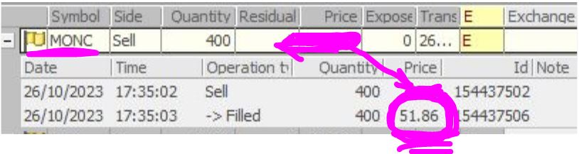 Indicata sabato scorso con area critica e "calamita" compresa tra 50 e 50.50 euro specialmente in caso di rottura di 52 euro. Anche in questo caso i software nel finale di giovedì sera all'unisono si sono improvvisamente girati in vendita in fase di asta di chiusura. Fortunatamente me ne sono accorto all'ultimo secondo e ho shortato 400 pezzi moc ricoprendoli in open venerdì mattina con due trade: il primo di 250 pezzi a mercato (MOO) al prezzo di apertura a 48.21 euro e sulla seconda parte (150 pezzi) speravo che gli algo continuassero a vendere invece si sono "reversati" subito long ed ho cautelativamente chiuso tutto a 48.11 euro circa.
