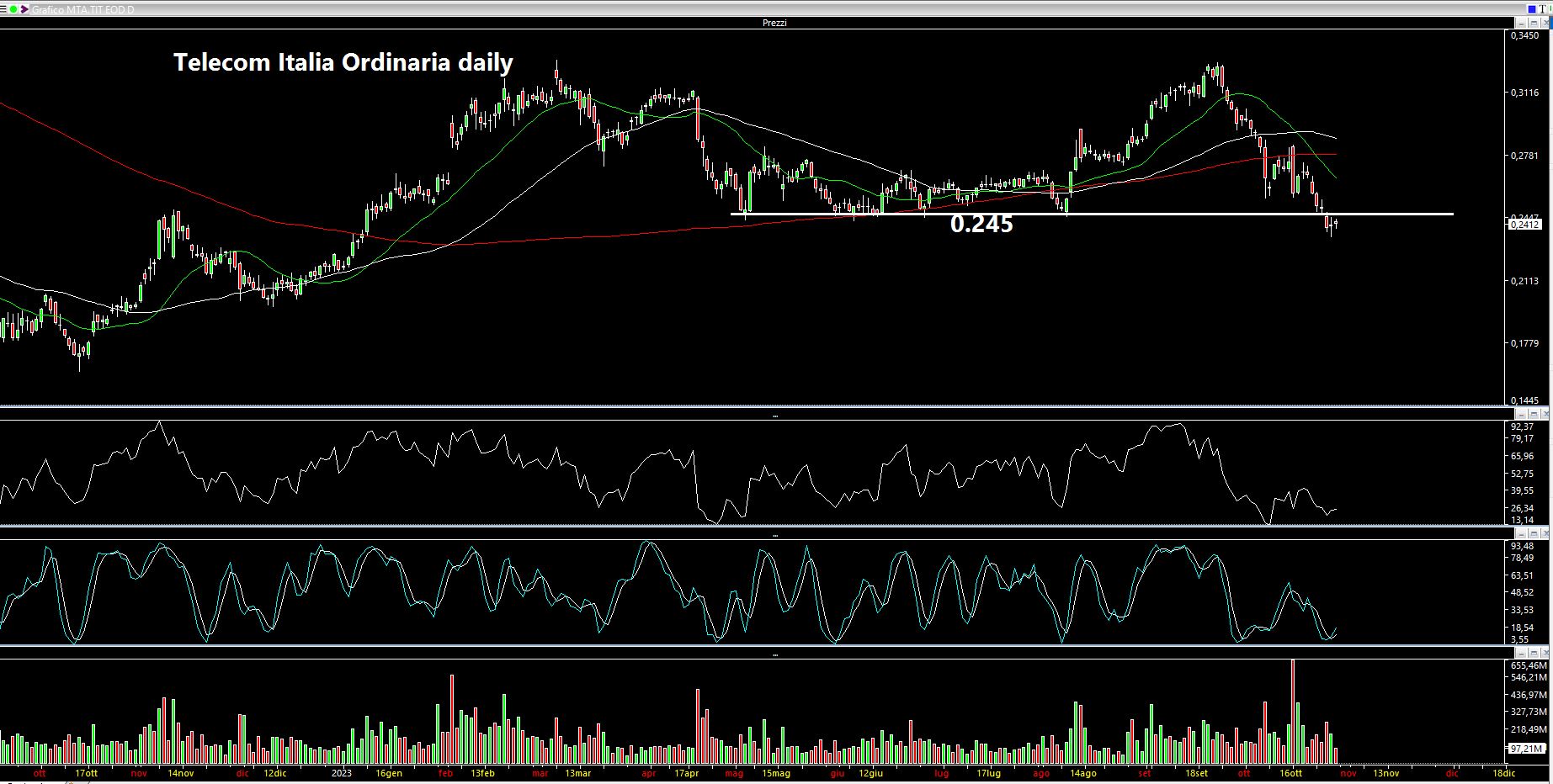 A dir poco delicato anche il quadro di Amplifon che è diretta a spron battuto verso 25 euro (close di venerdì a 25.76) e poi l'ultimo baluardo è collocabile a 23.80-24.00 circa.