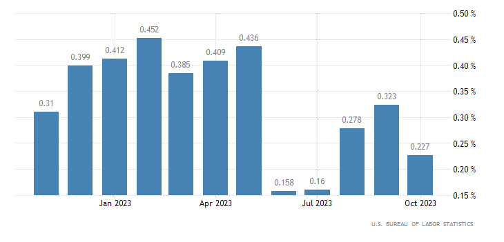 A livello annualizzato, la crescita di ottobre è del 2,4%, rispetto ad un consensus del +2,7% ed un rialzo di settembre del 2,7%. I dati sono rilasciati dall’U.S. Bureau of Labor Statistics.