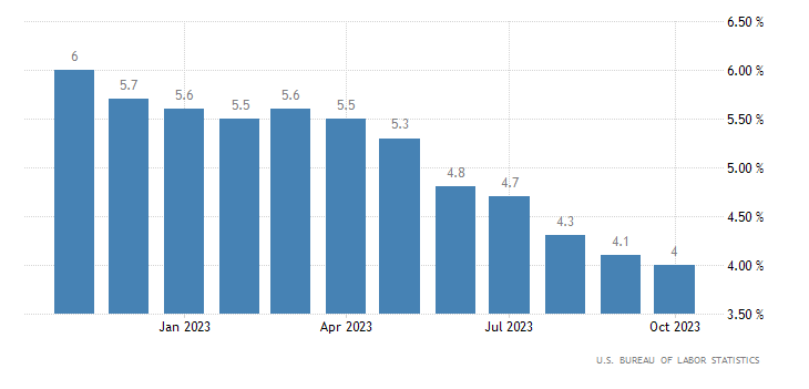 Su base annua, l’indice dei prezzi al consumo core ad ottobre si attesta al 4,0%, contro un consensus del 4,1% ed una rilevazione di settembre del 4,1%. I dati sono rilasciati dall’U.S. Bureau of Labor Statistics.