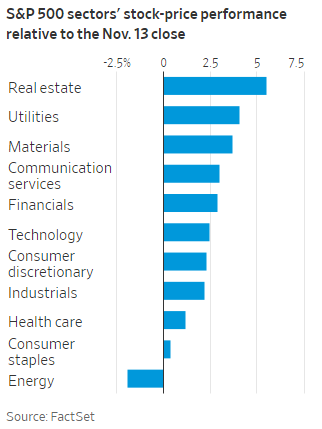 Inoltre, i guadagni di quest'anno sono stati estremamente consistenti. Mentre la tecnologia e i servizi di comunicazione sono sede nel gruppo dei “Magnifici Sette”: Apple, Microsoft, Alphabet, Amazon, Nvidia, Tesla e Meta sono entrambi in crescita di circa il 50% quest'anno, aiutati da risultati solidi, cinque settori su 10 dell'indice S&P500 sono crollati, con i servizi di pubblica utilità in calo di circa il 10%. Quest’ultimo rally è stato diverso: il settore tecnologico ha comunque ottenuto buoni risultati, ma i veri vincitori sono stati il ​​settore immobiliare, dei servizi di pubblica utilità e dei materiali, settori che soffrono quando i tassi sono elevati e hanno registrato utili poco brillanti rispetto alle aspettative. Ciò dimostra come il sentiment di mercato più ampio dipenda dal sollievo derivante dall’aumento dei rendimenti obbligazionari.