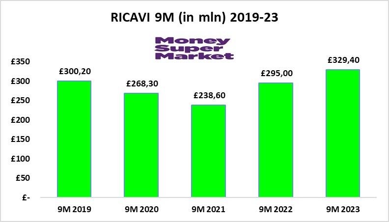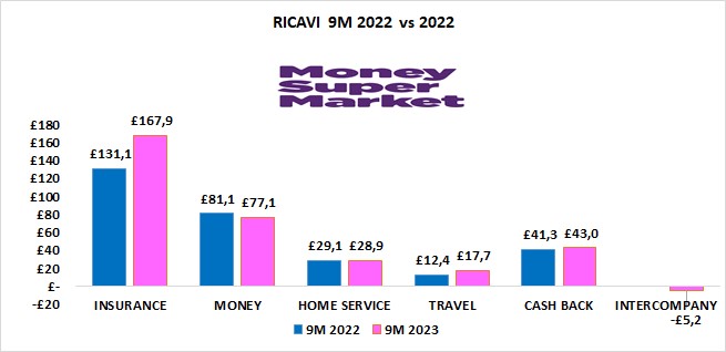 Nel corso dei primi nove mesi del 2023, MONEYSUPERMARKET ha riportato una crescita del fatturato dell'11,66% registrando un record storico di ricavi (£ 329,4 mln).