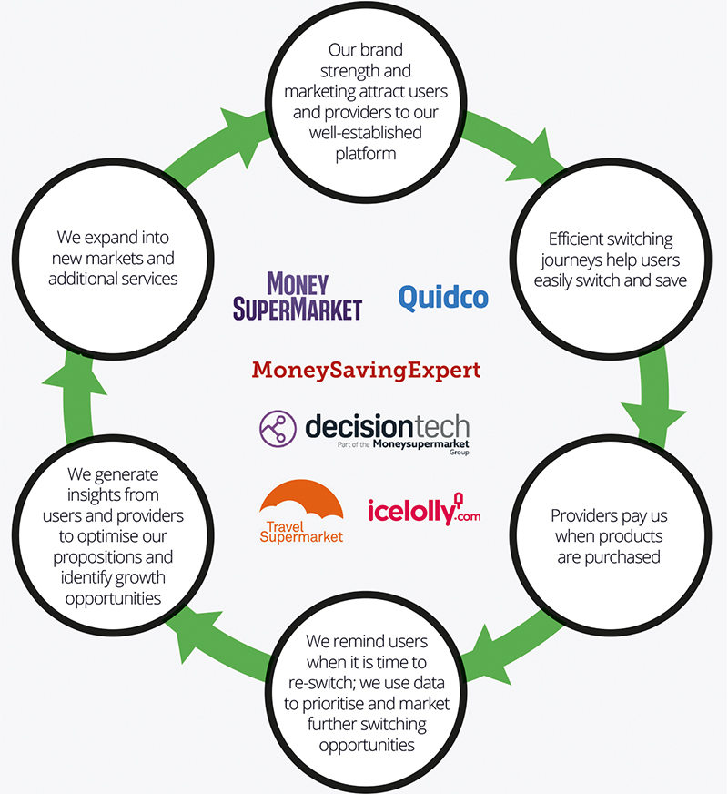 Come già indicato nei precedenti articoli, MONEYSUPERMARKET vanta una posizione di leader in UK nell'erogazione servizi di comparazione di prodotti assicurativi, bancari e di utenze domestiche. Nel 2022 ha allargato il proprio perimetro inglobando QUIDCO, operatore di CASHBACK.