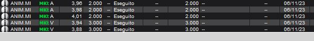 Ci sono volte in cui un trade proprio non ne vuole sapere di andare dalla tua parte e i software remano contro come non mai. E' giusto scrivere quando le cose vanno bene, lo è molto di più quando non vanno per il verso giusto. Oggi è stata la volta di Anima di cui ho scritto nell'articolo di ieri (link: https://www.lombardreport.com/2023/11/5/azioni-anima-azioni-fiera-milano/). A mio avviso un grafico daily bellissimo e con buoni volumi nella seduta di venerdì scorso. Francamente non le avevo in portafoglio ma ho piazzato i miei ordini così come scritto e sulle aree che avevo in testa: primo lotto a 4.01, secondo a 3.98 ed ultimo a 3.96....Il mercato apre ed ecco eseguiti tutti e tre. Francamente stavo seguendo altro ma fortunatamente la mia "distrazione" è durata poco: software accanito in sell e dopo una prima barra all'ingiù ho approfittato per smezzare la posizione (facendo incattivire ancor di più l'algoritmo). A questo punto visto che "quando inizi a SPERARE che un trade vada dalla tua parte è già ora di uscire", ho smezzato subito metà posizione in stop a 3.94 e ho provato a tenere gli altri pezzi.....niente da fare: quando le cose non vanno per il verso giusto è meglio stare fuori e "ripulire" la mente con serenità cercando altre opportunità. Iniziata male la giornata e per la proprietà transitiva anche la settimana, con un loss attorno a 400 euro.