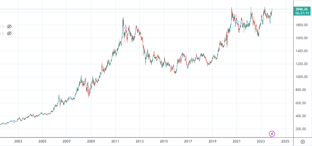Settimana trionfale per gli indici mondiali che, rivitalizzati dall'inflazione in calo in ogni grande agglomerato economico, tornano imperiosi a puntare verso i massimi storici e molti di loro ormai sono ad un passo da quegli epocali traguardi, tornando a condire quella grande insalata mista che vede un mix indigesto a più di qualche teoria economica, con l'Oro oltre i 2000 $, con il Bitcoin che si comporta come un asset azionario in epoca di rialzo dei tassi, e come un bene difensivo all'occorrenza quando i conflitti geopolitici tornano a scuotere i nervi, il tutto mischiato in un grande mare di azioni, la maggior parte super-capitalizzate, cannibalizzando il mercato, tornando imperiosamente a trionfare nelle piazze finanziarie.