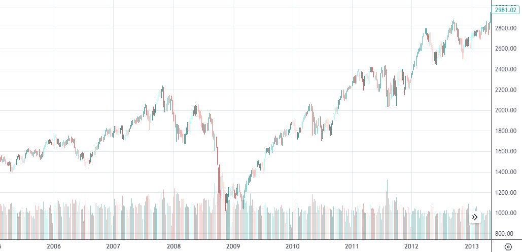 Fotografia che prende in considerazione la crisi dei "Subprime" del 2008 e che ha visto un forte calo sino ai primi mesi del 2009.