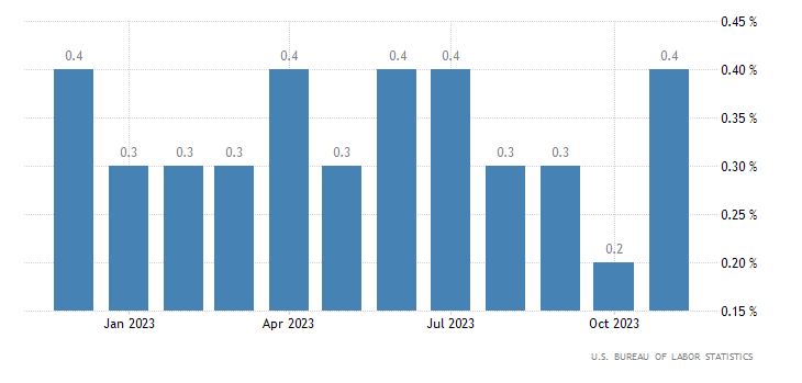Su base annua, invece, la crescita di novembre è del 4,0% come indicato dal consensus e pari alla rilevazione di ottobre (rivista da +4,1%). I dati sono rilasciati dall’U.S. Bureau of Labor Statistics.