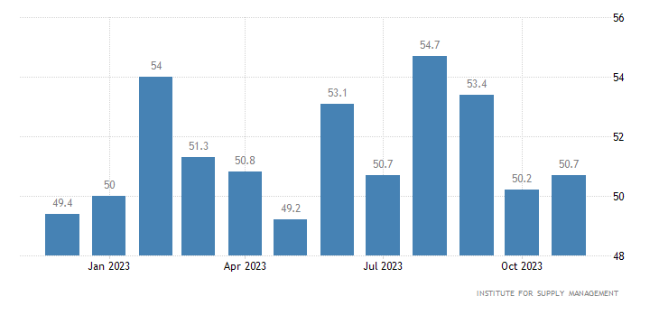 L’indice di occupazione nel settore dei servizi rilasciato da ISM a novembre si ferma a quota 50,7 punti, registrando una crescita rispetto ai 50,2 punti di ottobre.