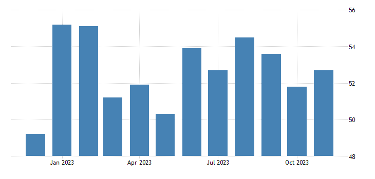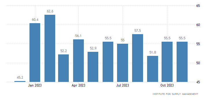 Il dato relativo ai nuovi ordini nel settore dei servizi rilasciato da ISM a novembre è pari a 55,5 punti, come ad ottobre.