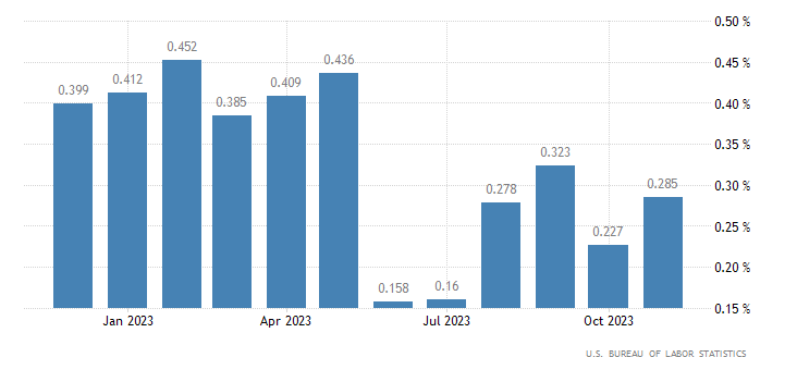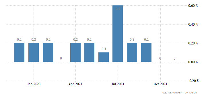 Anche a livello mensile il dato ricalca il consensus con una crescita dello 0,3%, in leggero rialzo rispetto al +0,2% di ottobre. Il dato è rilasciato dall’U.S. Bureau of Labor Statistics.