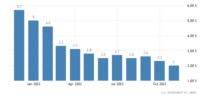 Confermando che stanno iniziando a pensare al timing dei tagli dei tassi, contraddicendo in toto quanto detto il primo dicembre scorso: “FED’S POWELL: PREMATURE TO SPECULATE ON WHEN POLICY MAY EASE” (È prematuro speculare su quando la politica potrà allentarsi sui tassi, ndr).