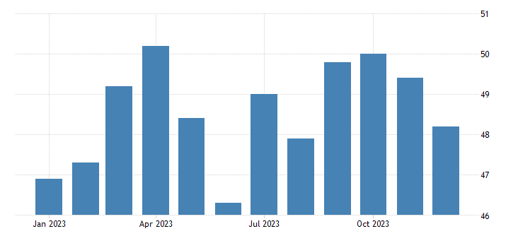 Il dato preliminare di dicembre del PMI S&P Global manifatturiero si attesta a quota 48,2 punti contro un consensus di 49,3 punti ed in calo rispetto al dato di novembre di 49,4 punti.