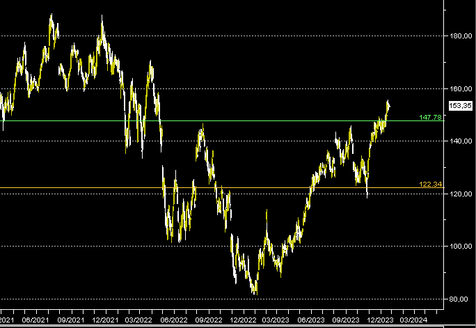 Nel breve periodo, per suggerire una direzionalità possiamo dire che i 148$ sono una prima boa direzionale che, al di sopra favorisce gli ingressi in long.