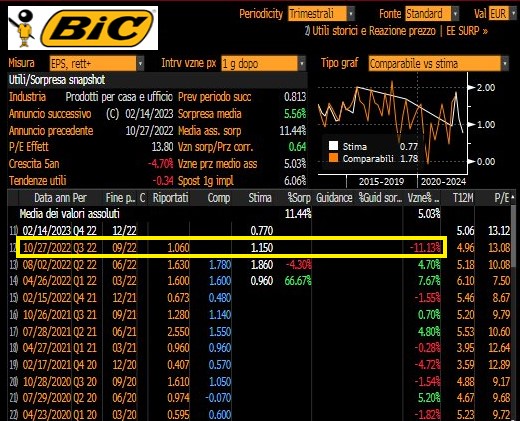 Lo scorso ottobre, alla vigilia della presentazione dei risultati del terzo trimestre, le quotazioni di BIC presentavano pressochè le medesime condizioni attuali: