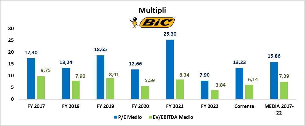 Analizzando i multipli attuali, emege uno sconto del 16% rispetto a quelli registrati nel corso degli ultimi sei anni.