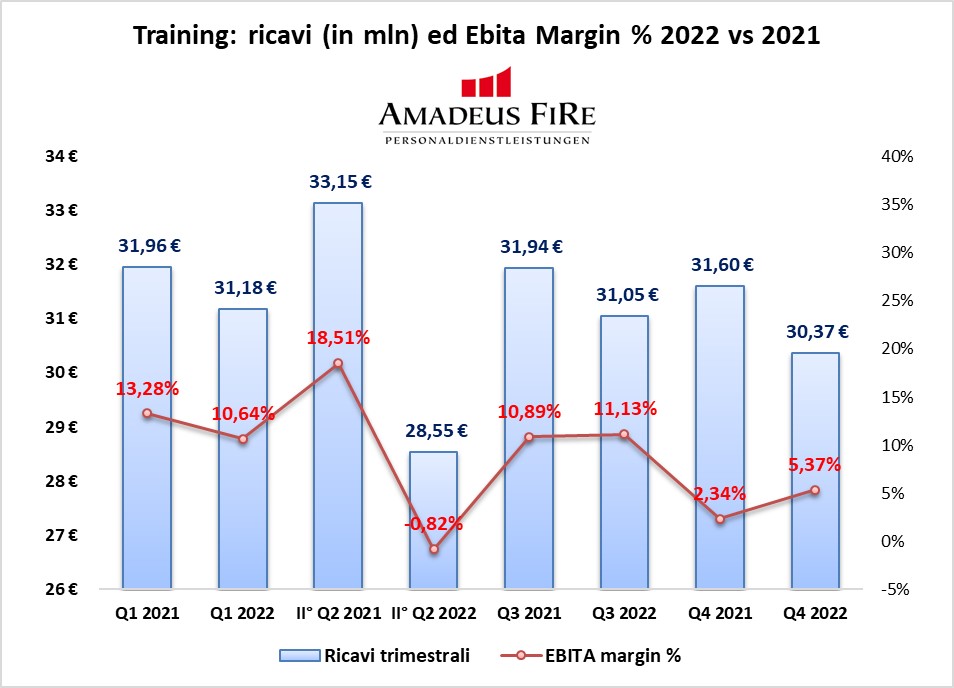 Come già evidenziato negli articoli precedenti, il maggior contributo a questo risultato deriva dal comparto “Personnel Service” che riporta una crescita del 17,36%. Il segmento “Training”, seppur in ripresa, registra una contrazione assoluta del 5,82%.