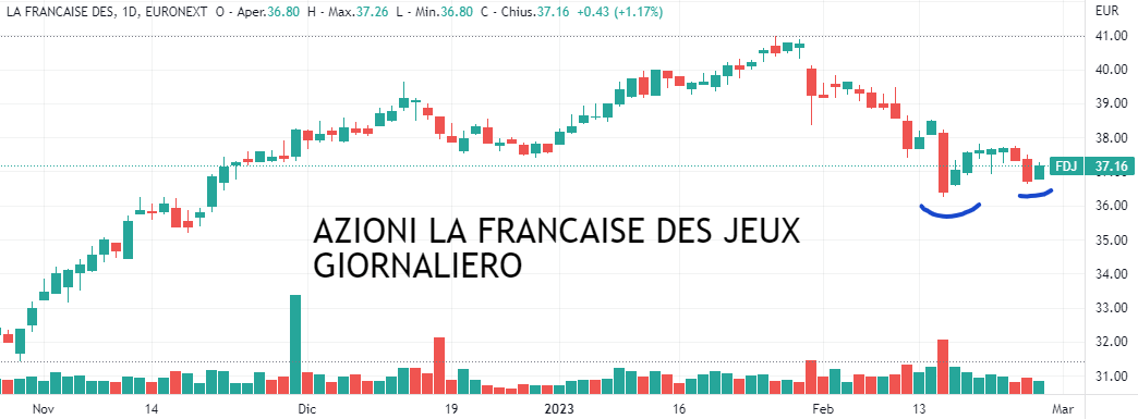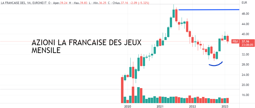 AZIONI LA FRANCAISE DE JEUX (Codice isin FR0013451333): Voliamo adesso in Francia con un’azione quotata all’Euronext di Parigi appartenente al settore del piacere. La Francaise Des Jeux è un’azienda che si occupa di giochi di lotteria e scommesse sportive; industria sempreverde in tutto il mondo. Nel caso specifico, si tratta del maggiore operatore francese nel gioco d’azzardo.