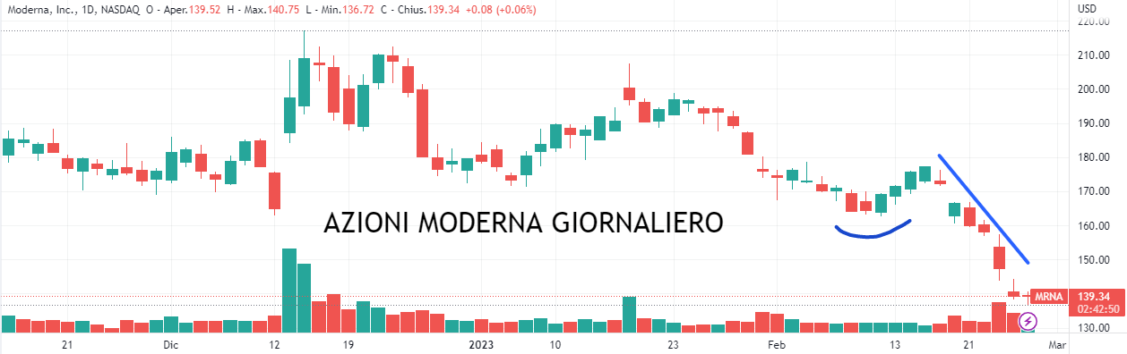 È recente la notizia che il titolo Moderna sta scendendo a causa della riduzione della domanda dei vaccini per Covid. Il fatturato è adesso in calo del 30% e, nonostante la società stia investendo su nuovi farmaci antitumorali, la vendita del vaccino contro il Covid continua a essere la fetta principale dei suoi guadagni.