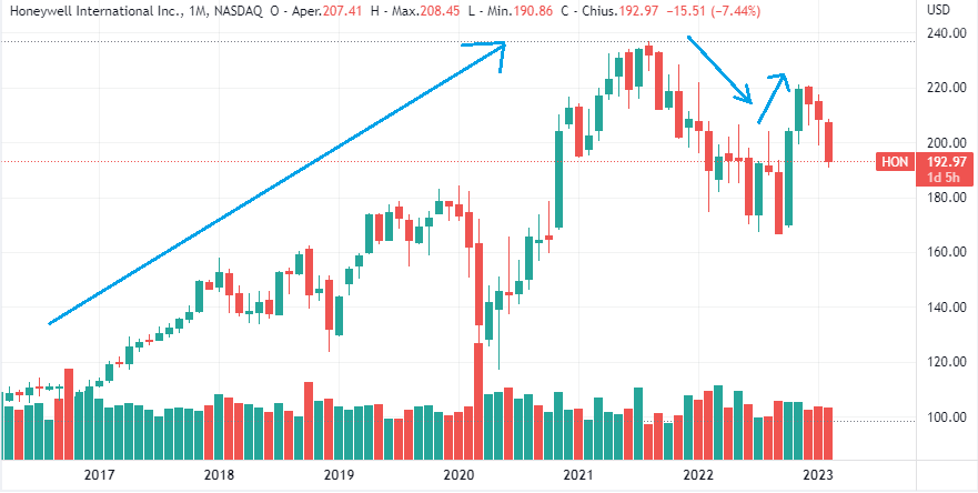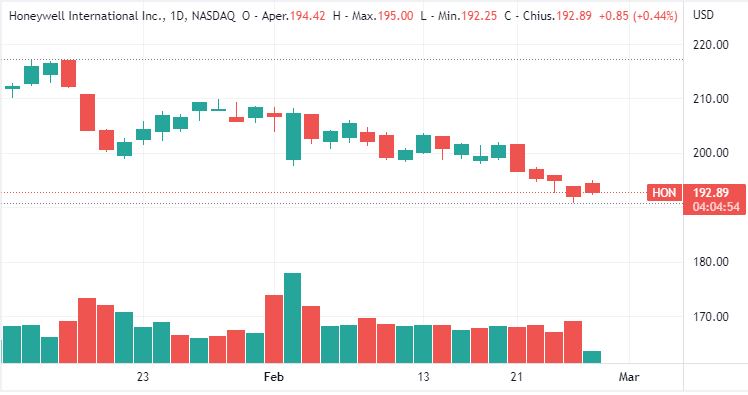 AZIONI HONEYWELL (Codice isin US4385161066): Rimaniamo nel Nasdaq con azioni Honeywell. La società, una delle più importanti multinazionali statunitensi, è attiva in diversi settori, tra cui automazione nel settore industriale e domestico e componenti per il settore automobilistico e aeronautico.
