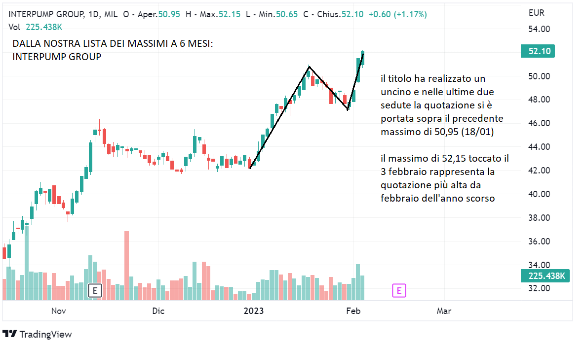 Di seguito l'analisi grafica di quattro titoli selezionati tra il nostro ranking controvalore e la lista dei massimi a 6 mesi