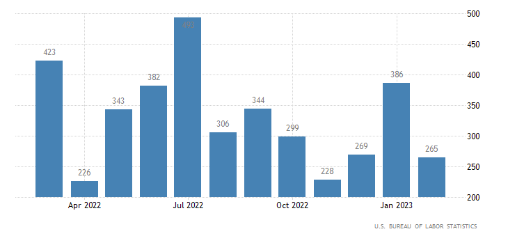 Nel settore non-agricolo privato, invece, a febbraio sono stati creati 265 mila posti di lavoro contro un consensus di 210 mila ed una rilevazione di gennaio di 386 mila (rivista da 443 mila). I dati sono rilasciati dall’U.S. Bureau of Labor Statistics.