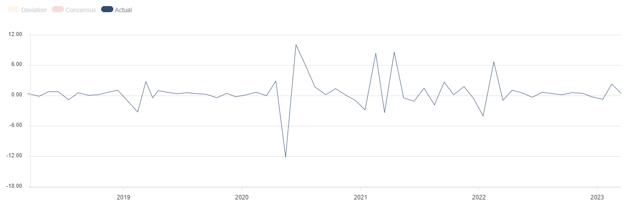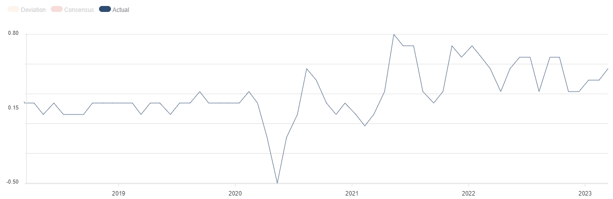 L’indice dei prezzi alla produzione core (che esclude il settore dell’energia e del cibo) a livello mensile a febbraio segna un +0,0% rallentando rispetto al +0,1% di gennaio (rivisto da +0,5%) e deludendo il consensus del +0,4%.