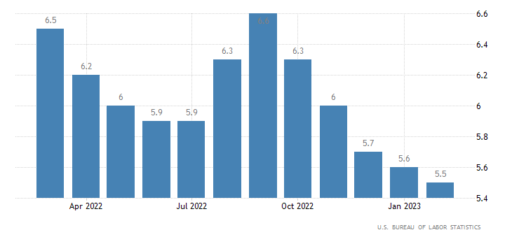A livello annualizzato il dato core rallenta a febbraio registrando un +5,5% come previsto dal consensus e dopo il +5,6% di gennaio. I dati sono rilasciati dall’U.S. Bureau of Labor Statistics.