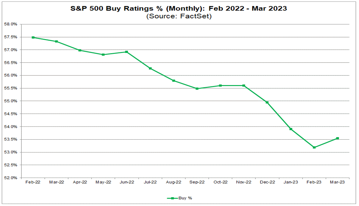 A questo proposito, ora che la stagione degli utili del quarto trimestre è nello specchietto retrovisore, gli investitori mirano a individuare indizi dalle prospettive fornite dagli analisti per la prossima stagione degli utili trimestrali che inizia a metà aprile. La crescita degli utili per le azioni dell'indice S&P500 è stata solidamente in rosso nell'ultimo trimestre 2022 e si prevede che la prima metà del 2023 sarà caratterizzata da altri due trimestri di calo e, secondo FactSet, potremmo già essere nel bel mezzo di una recessione a Wall Street.