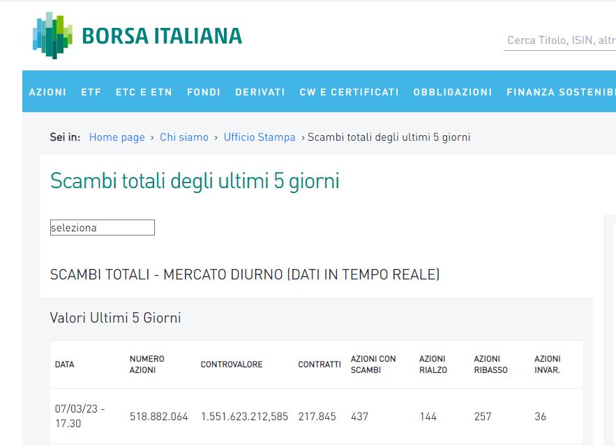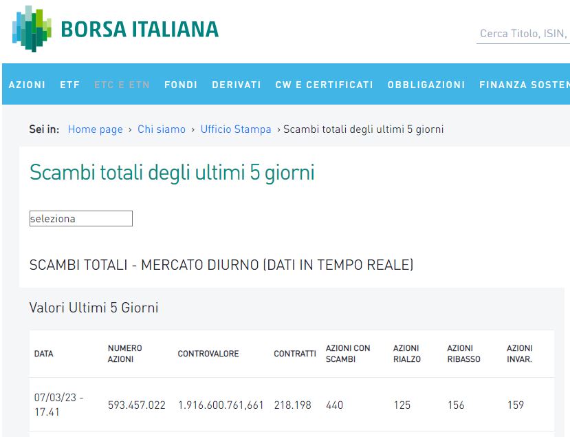 Talvolta mi capita di sentire che Borsa Italiana scambia parecchio. Mah....L'annoso problema dei volumi. Guardate alle 17.30 come era la situazione: