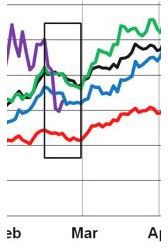 Detta in soldoni e graficamente, nel mese di aprile ci spostiamo all'interno del quadrante verde (in blu abbiamo la consueta media di tutti gli anni, in rosso l'andamento da inizio anno ad oggi):
