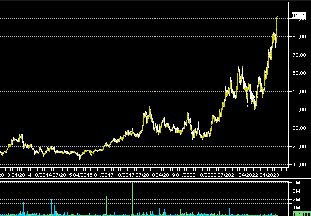 A questi prezzi quindi, non riteniamo opportuno strategicamente, l'ingresso, ma imposteremo il canonico alert ai 70€ per entrare in azione in area 65€.