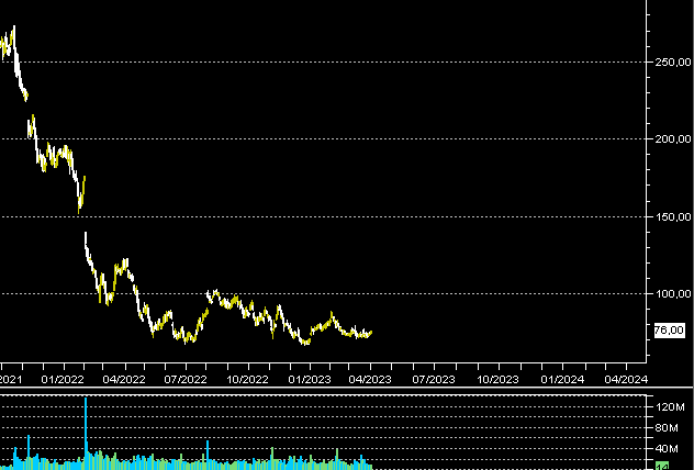 Azione che sta soffrendo da tempo, rimanendo accartocciata sotto i 100$, proprio per questo potrebbe tornare nel mirino degli operatori ed allora appare quantomai opportuno impostare un primo alert agli 85$ che ci farà mostrare attenzione all'evolversi della situazione, direttamente con il book sotto il naso.