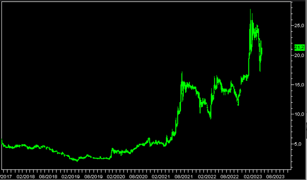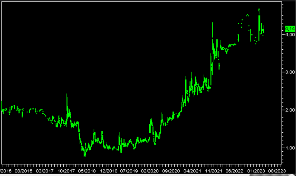 Il supporto di lungo periodo è ai 4 € e la rottura di questo livello attiverebbe il livello successivo ai 3.20€ quindi livelli da rispettare fermamente in questo caso.