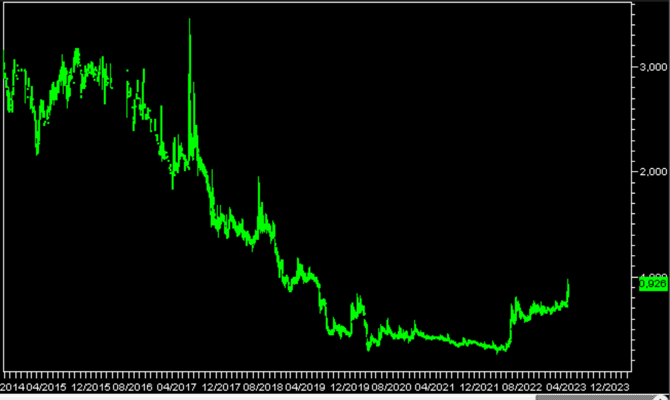 Interessante la rottura della resistenza ai 0.85 € circa che ha fatto da forte volano alle recenti giornate di contrattazione, spingendola sino ai 0.97€.